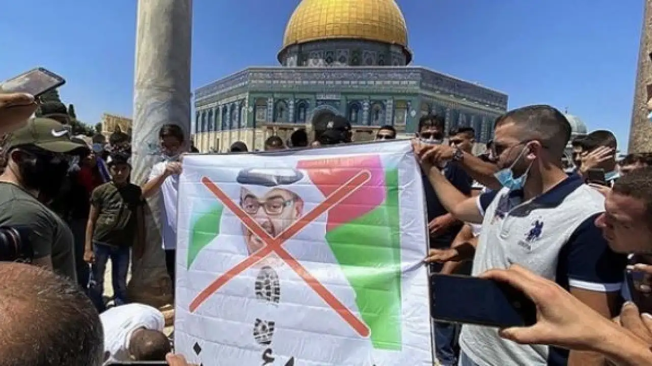 Kayıtlarda bir Filistinlinin, tartıştığı BAE heyetini normalleşme taraftarı olmakla suçladığı, kendileriyle muhatap olmadığını söylediği ve Aksa'dan derhal çıkmalarını istediği görülüyor.