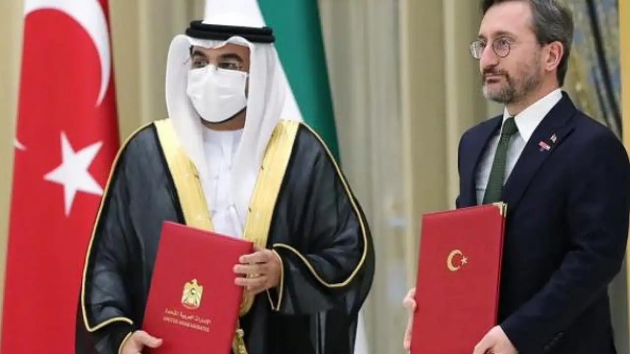 Cumhurbaşkanlığı İletişim Başkanı Fahrettin Altun ve BAE Medya Ofisi Başkanı Saeed al Eter tarafından imzalanan protokolle iki ülke arasında dostane ilişkilerin yanı sıra medya ve iletişim alanlarında ilişkiler de geliştirilecek.