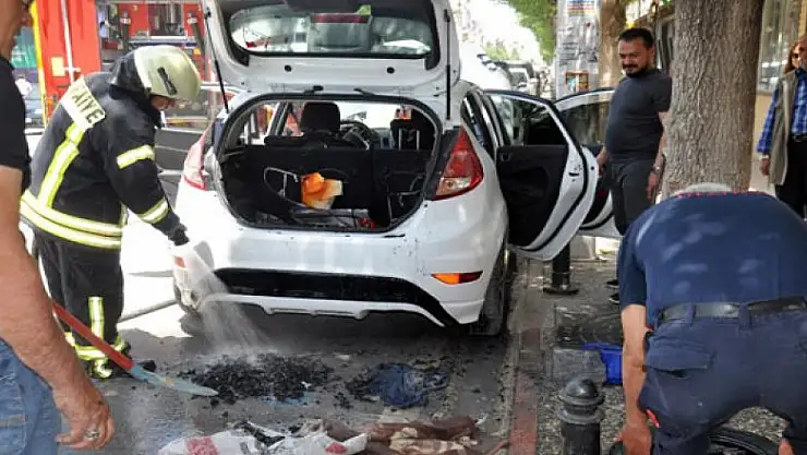 Olay, saat 12.15 sıralarında Külhan Mahallesi 1'inci İstasyon Caddesi'nde, Şevket Karakışla'ya ait 70 FK 576 plakalı otomobilde meydana geldi. Çevredekiler park halindeki otomobilden dumanların yükseldiğini fark edip itfaiyeye haber verdi. Gelen itfaiye ekipleri, aracın camını kırıp müdahale etmek istedi ancak sonuç alınamadı.