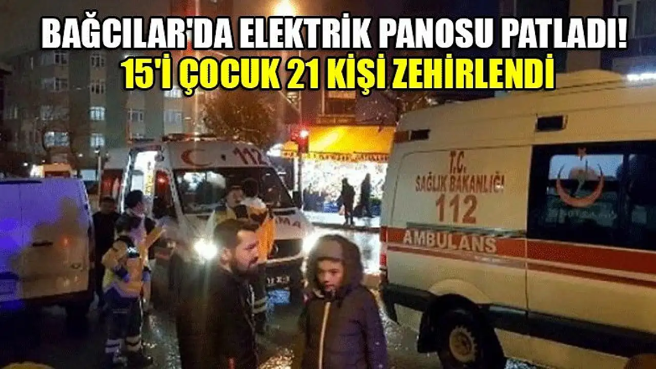 Edinilen bilgilere göre İstanbul'un Bağcılar ilçesinde, bir binanın elektrik panosu patladı, yoğun duman nedeniyle 15'i çocuk 21 kişi zehirlendi.