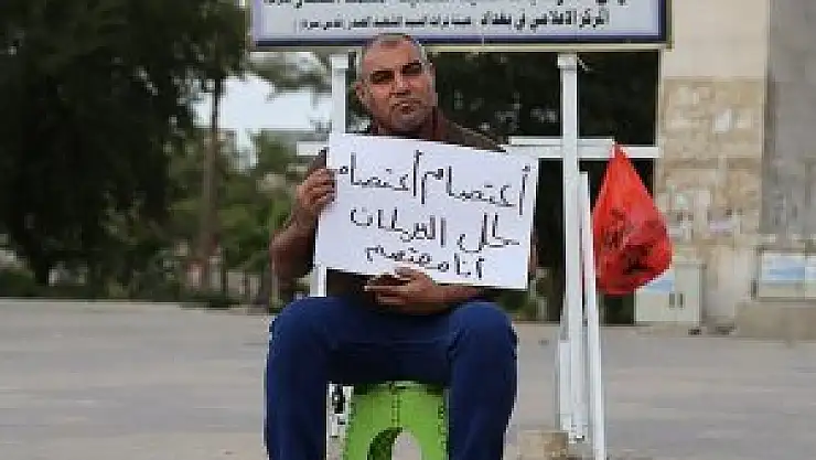 Bağdat'ta birçok gösteri ve toplumsal eylemin merkezinde yer alan Tahrir Meydanı, son 7 aydır farklı bir protestoya sahne oluyor. Hacı Ahmet adındaki vatandaş, her gün saat 16.00'da Tahrir Meydanı'na gelip gece geç vakte kadar oturma eylemi yapıyor.