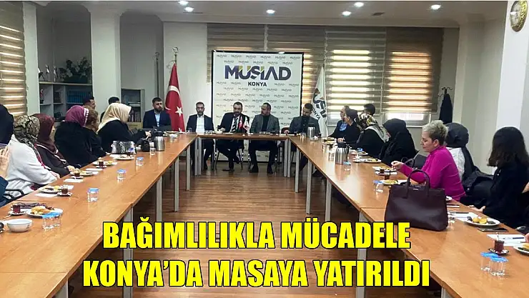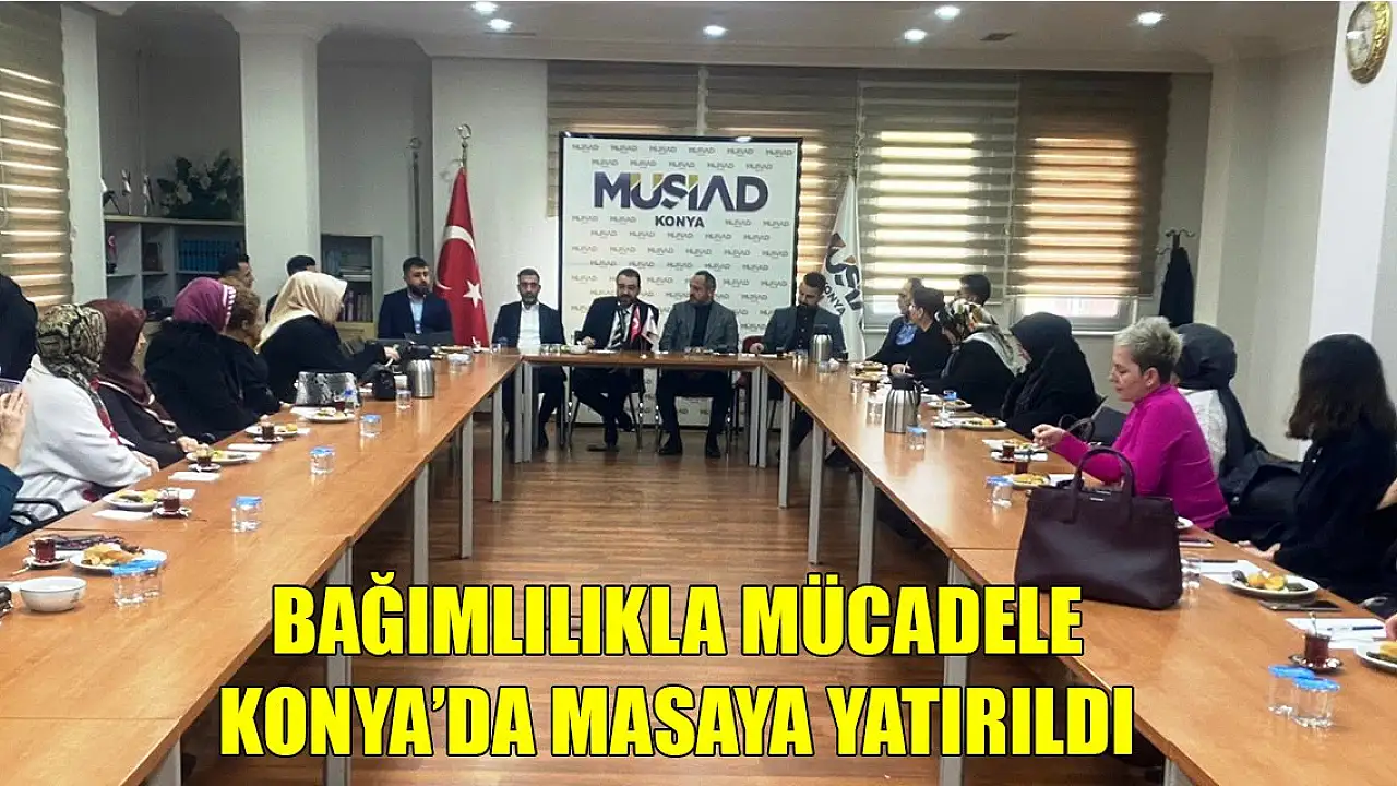 Bağımlılıkla mücadelede farkındalık projesi Konya Müsiad Şubesinde İstanbul BAYDER Genel Koordinatörü Regaib Bostan ile Bağımlılık Danışmanı ve Köşe Yazarı Yücel Kuran'ın katılımıyla kadınlara yönelik gerçekleştirildi.