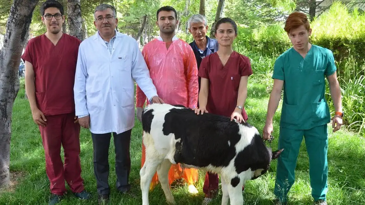 Konya’da doğuştan kalın bağırsağı gelişmediği için dışkılayamayan buzağı, Selçuk Üniversitesi Veteriner Fakültesi hayvan hastanesi cerrahi kliniğinde yapılan ameliyatla sağlığına kavuştu.