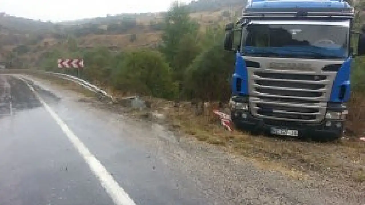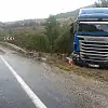 Karayolu, kaza nedeniyle bir süre trafiğe kapatıldı. Maddi hasarın meydana geldiği tırın dorsesi, vinçle bulunduğu yerden çıkartıldı.
