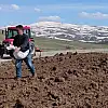 Erzurum'un Aşkale ilçesinde karların erimesi ve havaların normale dönmesi ile çiftçiler tarlalarına tohum ekti.