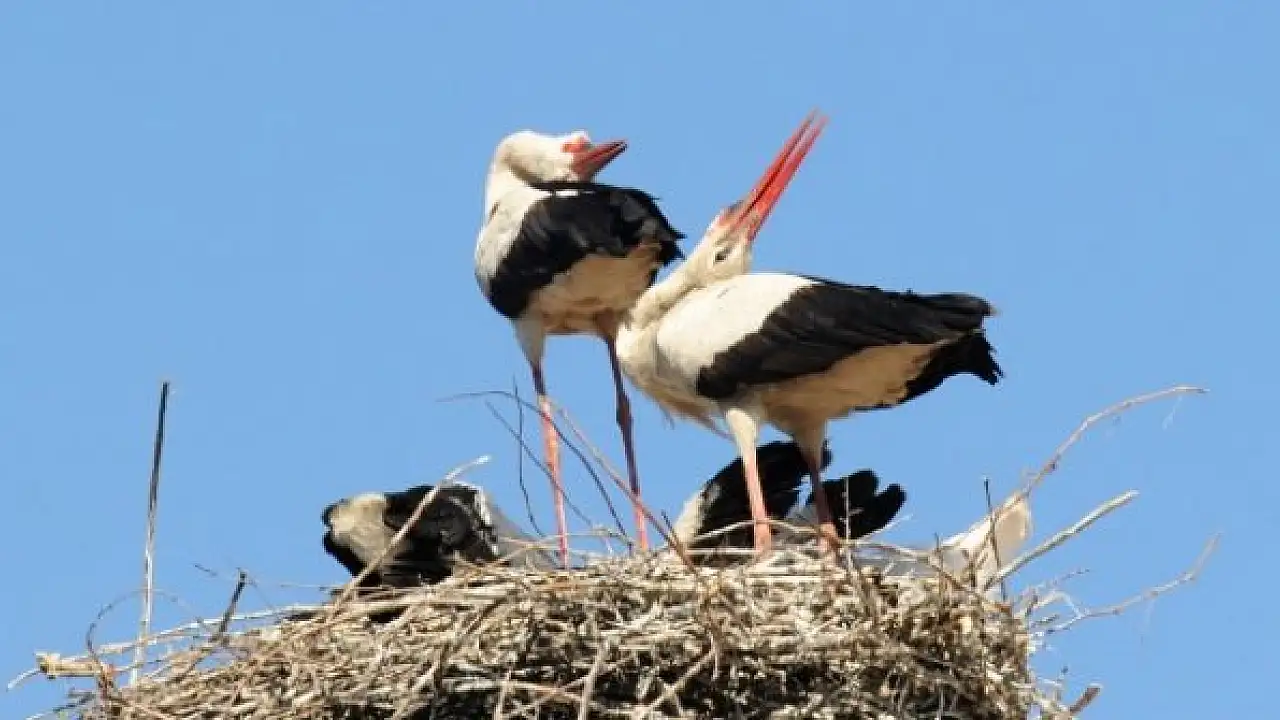 Havaların ısınmaya başlamasıyla birlikte leylekler, Çorum'un Kargı ilçesine gelmeye başladı.