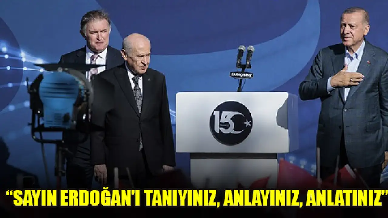 "Türkiye bizimdir, herkes Türkiye'dir. Türk milleti, ayrılık kabul etmeyen, varlığının bedelini kanla, fedakarlıkla ödemiş büyük bir kudrettir. Doğrulalım, ayağa kalkalım, hainleri güldürmeyelim, darbecilere el ovuşturmayalım, bağımsızlığımızın sembolü ay yıldızlı al bayrak altında hep beraber toplanalım. Korku aşılayanlara, korkuluk dikip siyasi istismar çetelesi tutanlara fırsat vermeyelim, Türkiye'yi yaşatalım, cansiperane şekilde hizmet edelim. Gün dayanışma günüdür. Gün kardeşliğimizi tescil ve teyit etme günüdür. Gün büyük düşünme, istiklalimize sahip çıkma, küçük hesap yapanları, dağılmamızı gözleyenleri mağlup etme günüdür. Son söz olarak, bu memleketin evladı, bir siyasi partinin sorumluluğunu taşıyan bir vatan evladı olarak sizlere diyorum. Bunu yanlış yorumlamayınız. Yanlış anlamayınız ama dikkatinizi çekmek için söylüyorum. Sayın Recep Tayyip Erdoğan'ı tanıyınız, Sayın Recep Tayyip Erdoğan'ı anlayınız, Sayın Recep Tayyip Erdoğan'ı anlatınız aziz İstanbullular."