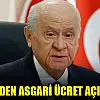 MHP Genel Başkanı Devlet Bahçeli, yeni asgari ücretle ilgili yaptığı açıklamada, 'Bu ücretin geldiği aşama yüreklere su serpmiştir.' dedi.
