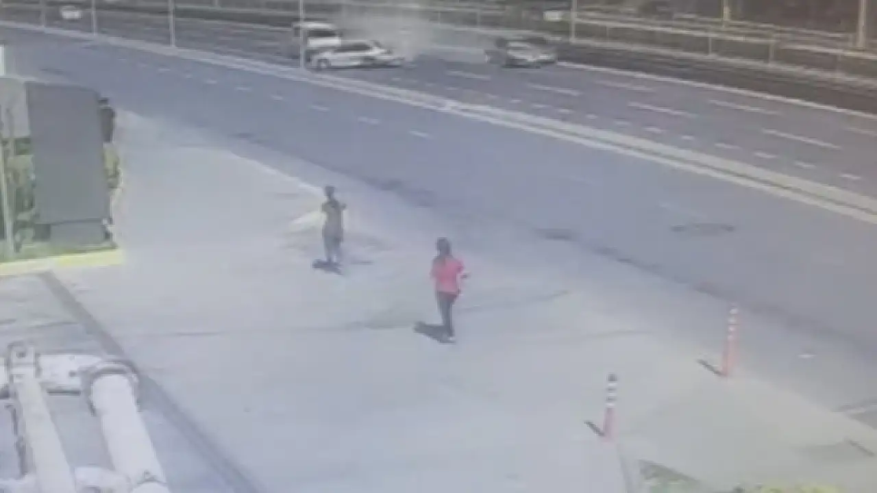 BAHÇELİEVLER D-100 Karayolu'nda üç aracın karıştığı zincirleme kazada bir otomobil takla atarak yan yola savruldu. Takla atan otomobildeki üç kişinin yaralandığı kaza güvenlik kamerasına yansıdı.