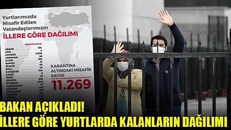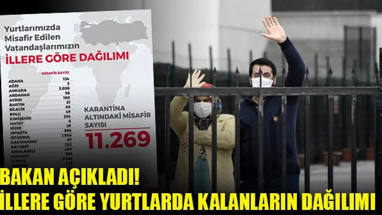 Gençlik ve Spor Bakanı Mehmet Kasapoğlu, yurtlarda karantina altında olan vatandaşların illere göre dağılımını açıkladı.