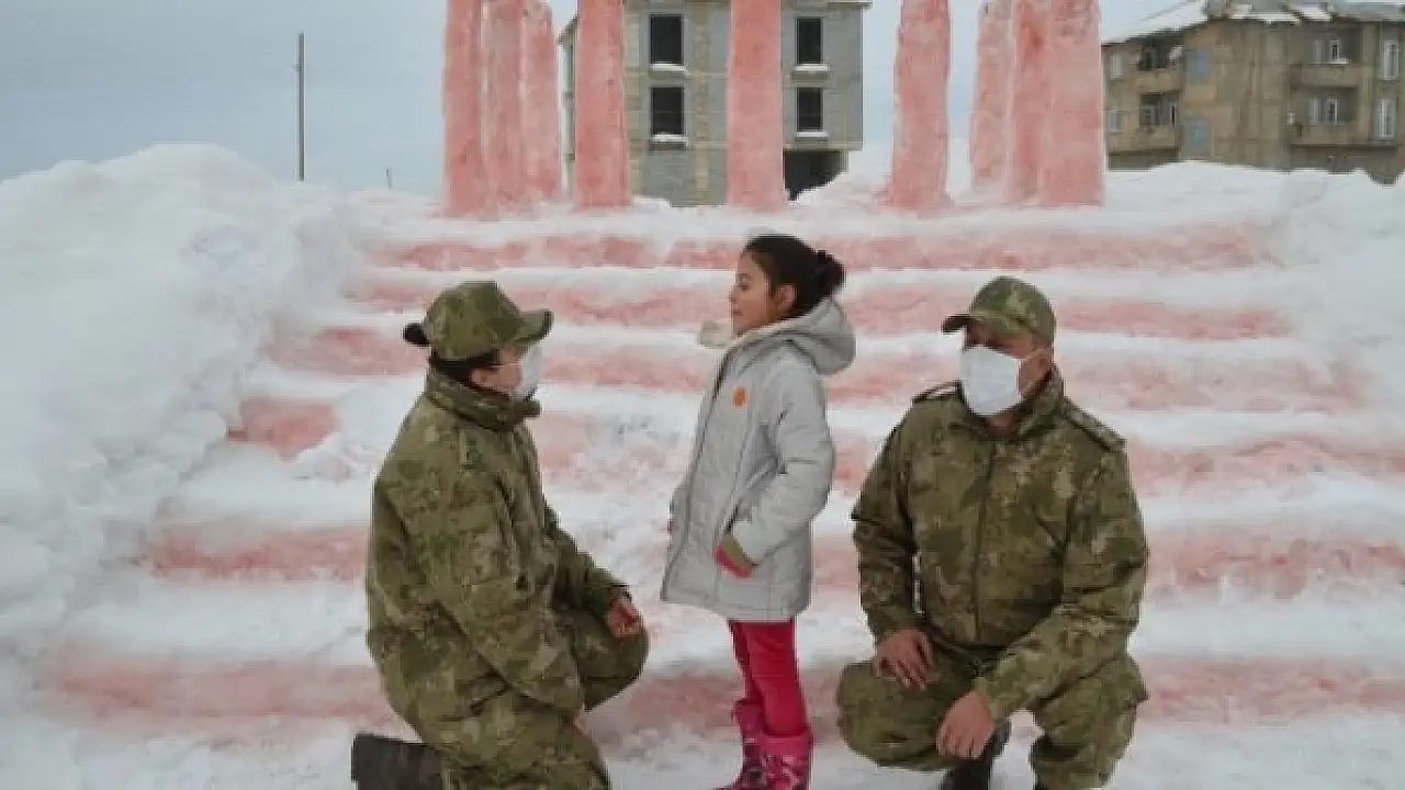 Yüksekova ilçesi Yeni Mahalle'de yaşayan Mehmet Şerif Karahan, Atatürk hayranı olan ve Anıtkabir'e gezmek isteyen kızı Hira'nın bu hayalini gerçekleştirmek için evinin önünde karlarla Anıtkabir yaptı.
