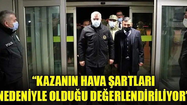 Milli Savunma Bakanı Akar, 'İlk bilgiler ve görgü tanıkları ifadelerine göre kazanın ani değişim gösteren olumsuz hava şartları nedeniyle meydana geldiği değerlendiriliyor' dedi.