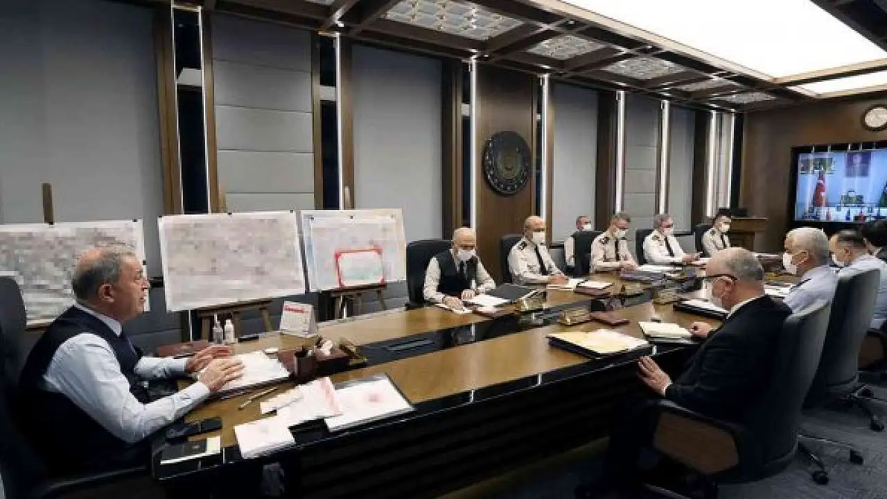 Milli Savunma Bakanı Hulusi Akar, Genelkurmay Başkanı Orgeneral Yaşar Güler ve kuvvet komutanlarının katılımıyla video telekonferans toplantısı düzenledi.