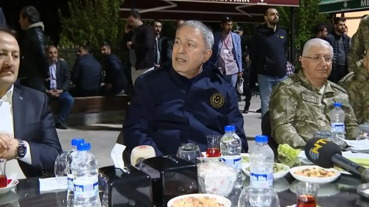MİLLİ Savunma Bakanı Hulusi Akar, beraberinde Genelkurmay Başkanı ve Kara Kuvvetleri Komutanı ile Irak sınırının sıfır noktasındaki Geyiktepe Üs Bölgesi'nde Mehmetçik ile iftar yaptı.