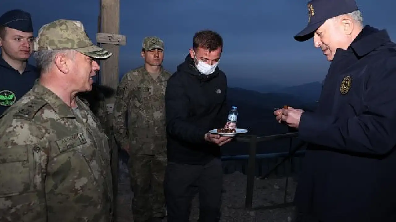 Akar, beraberinde Genelkurmay Başkanı Yaşar Güler ve Kara Kuvvetleri Komutanı Orgeneral Musa Avsever ile Çukurca kırsalındaki 2 bin 300 rakımlı Geyiktepe Üs Bölgesi'ne gitti. Sınırın sıfır noktasında Mehmetçik ile iftar yapan Akar, daha sonra komutanlarla Şırnak'a geçti.