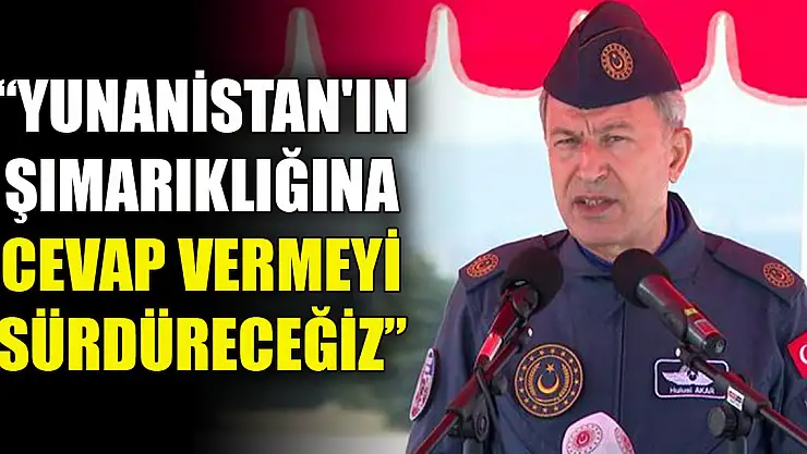 Milli Savunma Bakanı Hulusi Akar, Yunanistan'ın, saldırgan eylem ve söylemlerinin, devam ettiğini belirterek, 'Yunanistan'ın bu şımarıklığına her zaman, her yerde mutlaka cevap verdik, vermeyi sürdüreceğiz' dedi.