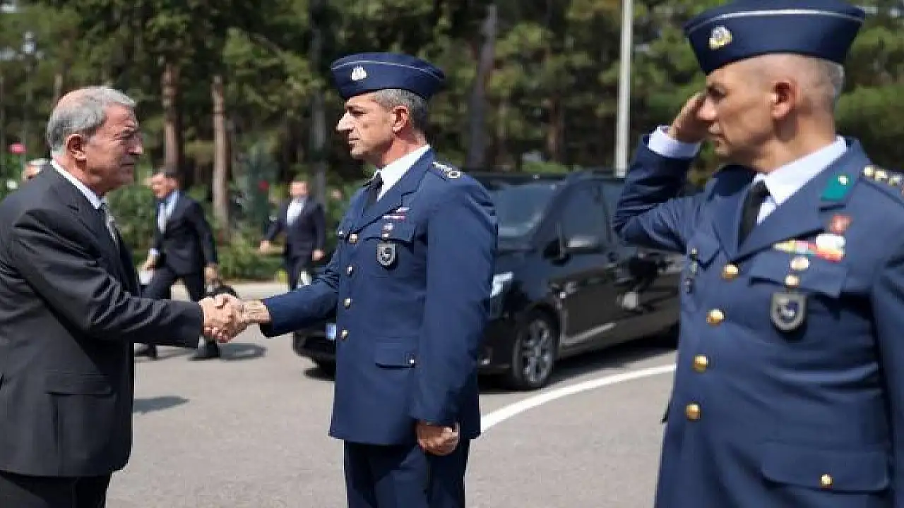 Bakan Akar, Balıkesir 9. Ana Jet Üs Komutanlığına gelişinde Vali Hasan Şıldak ile Üs Komutanı Tuğgeneral Ergin Dinç tarafından karşılandı.