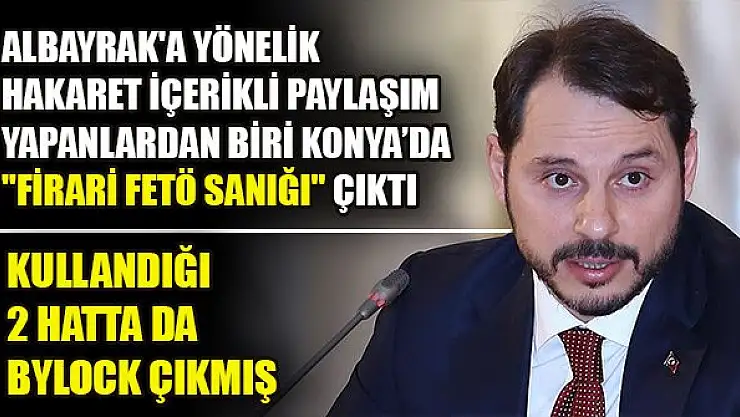 Sosyal medyada Hazine ve Maliye Bakanı Berat Albayrak ile ailesini hedef alan hakaret içerikli paylaşımlar yaptığı tespit edilen şüphelinin, Konya'da 2017'de görülen FETÖ çatı davasının 'firari sanığı' olduğu belirlendi.