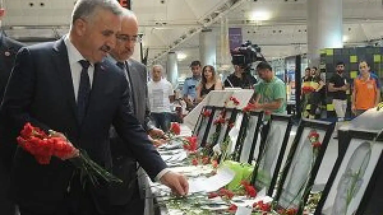 Arslan, havalimanında açılan stantta görev şehitlerinin anısına birer çiçek bırakarak, Fatiha okuduklarını ifade etti.