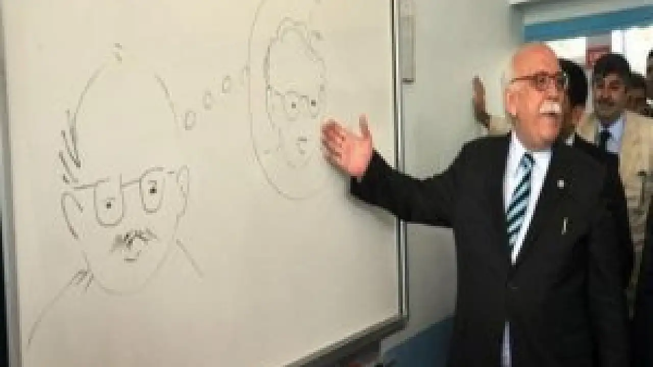 Milli Eğitim Bakanı Nabi Avcı, 43 yıl önce Eskişehir'de mezun olduğu lisede öğrencilere karnelerini verdi. Bakan Avcı, tahtaya kendisinin öğrencilik yıllarını ve şimdiki dönemini anlatan bir karikatür çizdi.
