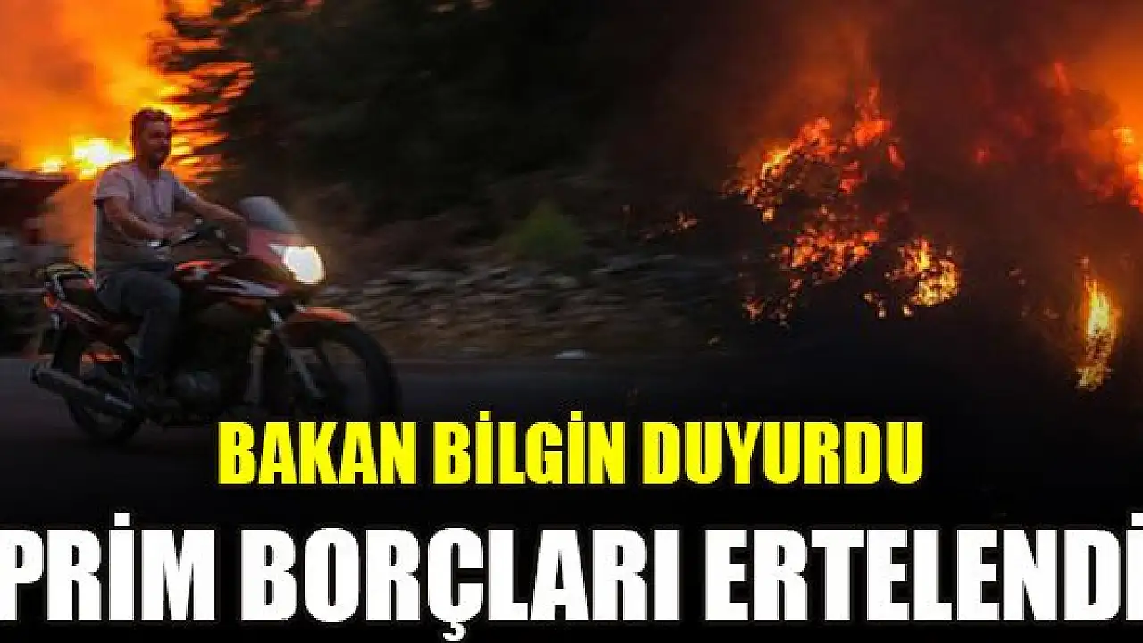 Çalışma ve Sosyal Güvenlik Bakanı Vedat Bilgin, orman yangınlarından etkilenen bölgelerde yaşayan iş yeri sahipleri ve sigortalıların sosyal güvenlik prim borçlarının erteleneceğini açıkladı.