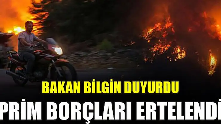 Bakan Bilgin, 28 Temmuz'da Adana'nın Aladağ, İmamoğlu, Karaisalı ve Kozan ilçeleri, Antalya'nın Manavgat, Akseki, Alanya, Gündoğmuş ve Gazipaşa ilçeleri, Mersin'in Aydıncık ve Silifke ilçeleri, Osmaniye'nin Merkez ve Kadirli ilçeleri ile 29 Temmuz'da Muğla'nın Marmaris, Bodrum, Milas, Köyceğiz ve Seydikemer ilçelerinde meydana gelen orman yangınlarının genel hayatı etkilediğini ve bu yerlerin afet bölgesi ilan edildiğini hatırlatarak, yangınlardan etkilenen iş yeri sahipleri ve sigortalıların sosyal güvenlik prim borçlarının erteleneceğini açıkladı.