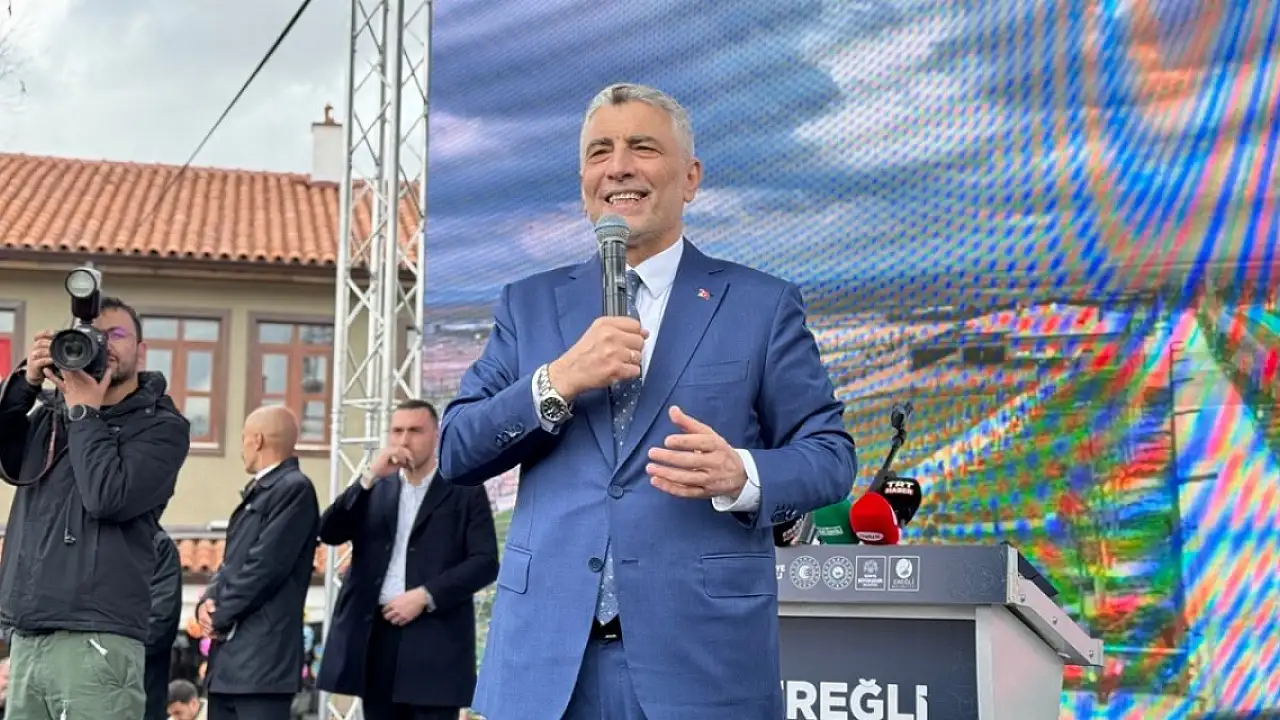 "Türkiye'de belediyecilik konusunda model şehir Konya'dır ve Uğur Başkan Dünya Belediyeler Birliği Başkanı. Bakın, dünyanın başkanı Uğur başkan. Bir tecrübe abidesi Hüseyin Obrukçu başkanımız. Ayrılmıyoruz, dayanışma içindeyiz. Benim partim, senin partinin kavgası yok. Kim nerede hizmet edecekse o isimler tercih edildi. Konya Büyükşehir Belediyemiz Ereğli'mize desteğini her zaman arttırarak devam ettirecek. Biz merkezi hükümet olarak Ereğli için yapılması gereken ne varsa yapacağız."