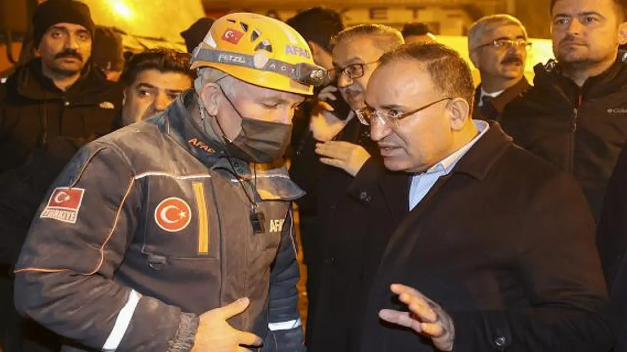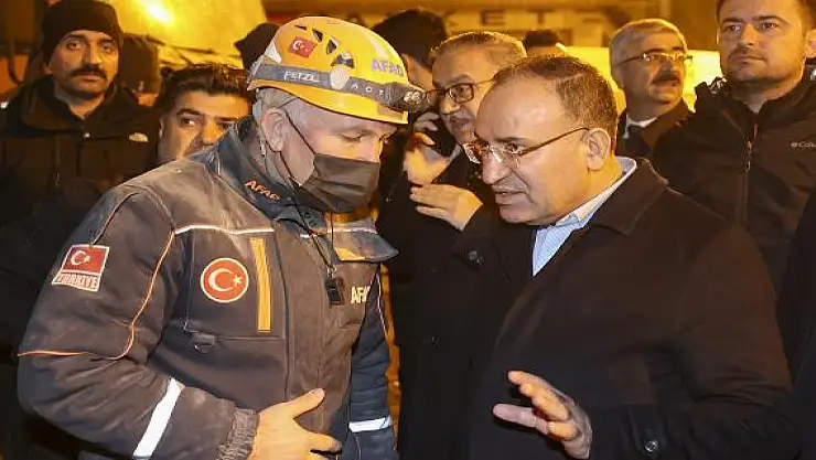 AFAD İl Müdürü İlami Çakmak'tan çalışmalarla ilgili bilgi alan Bozdağ, yakınları enkaz altında kalan vatandaşlarla görüştü.