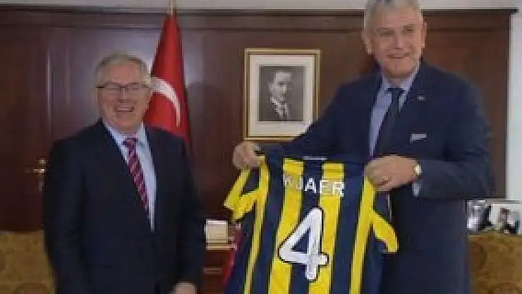 Danimarka Büyükelçisi Madsen, Avrupa Birliği (AB) Bakanı Volkan Bozkır'a Fenerbahçe'de forma giyen Danimarkalı futbolcu Kjaer'in imzalı formasını hediye etti.