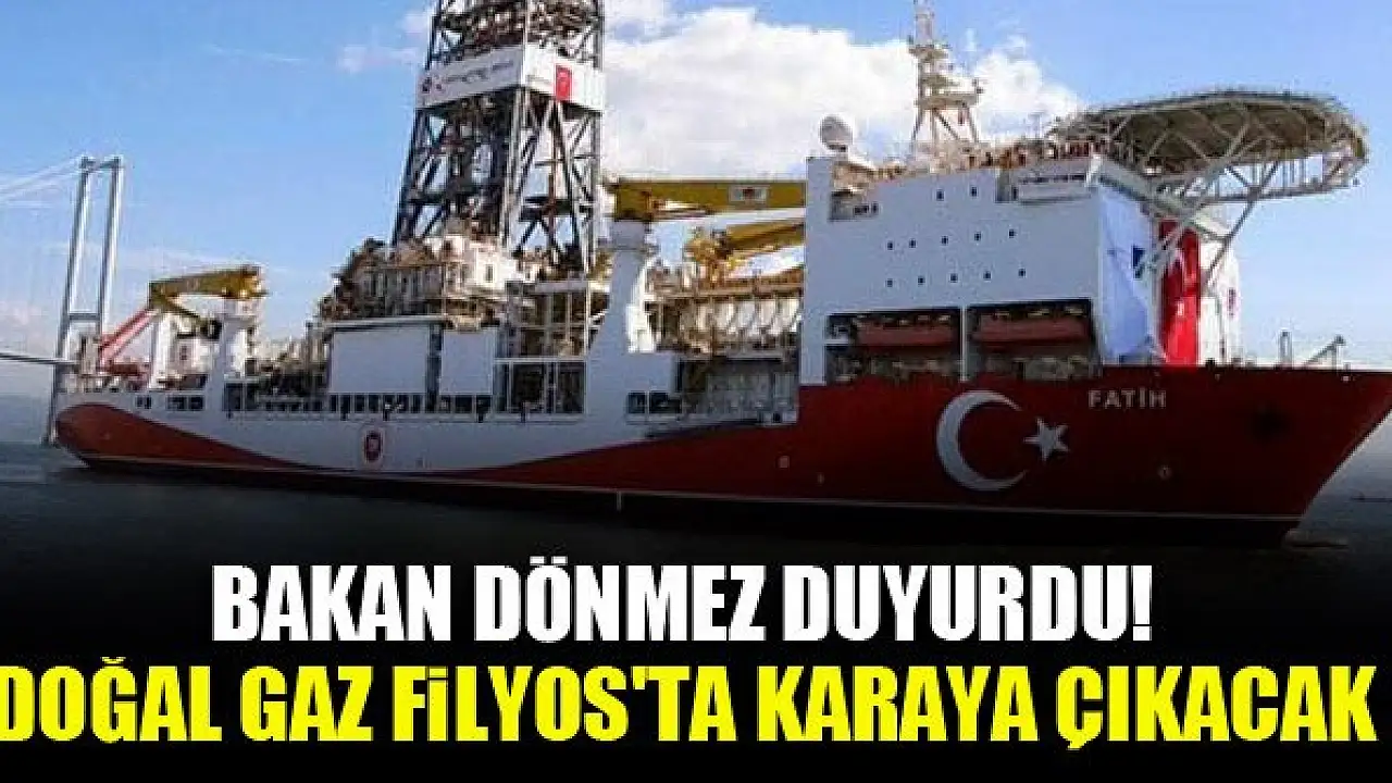 Bakan Dönmez, 'Fatih'in keşfettiği 405 milyar metreküplük doğal gaz rezervimiz Filyos'ta karaya çıkacak ve buradan ana şebekeye bağlanacak.' dedi.