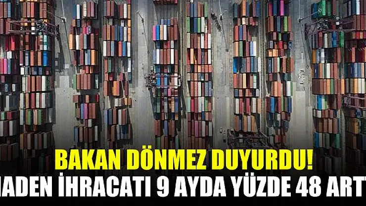 Enerji ve Tabii Kaynaklar Bakanı Fatih Dönmez, Türkiye'nin maden ihracatının ocak-eylül döneminde geçen yılın aynı dönemine göre yüzde 48 artarak 4,38 milyar dolara yükseldiğini bildirdi.