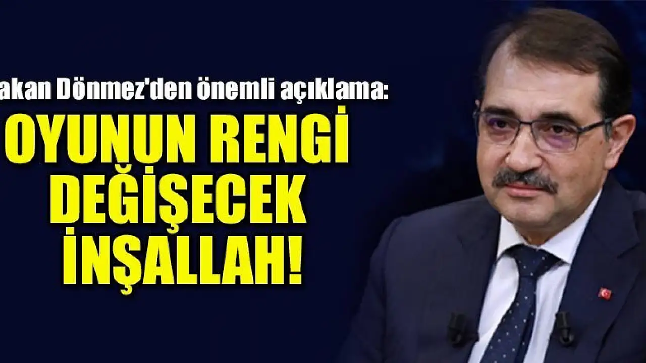 Petrol ve doğal gaz çalışmalarıyla ilgili konuşan Enerji ve Tabi Kaynaklar Bakanı Fatih Dönmez, 'Dua edin ilk kuyularda (Akdeniz) doğal gaza ya da petrole ulaşalım, o zaman oyunun rengi değişecek inşallah' dedi.