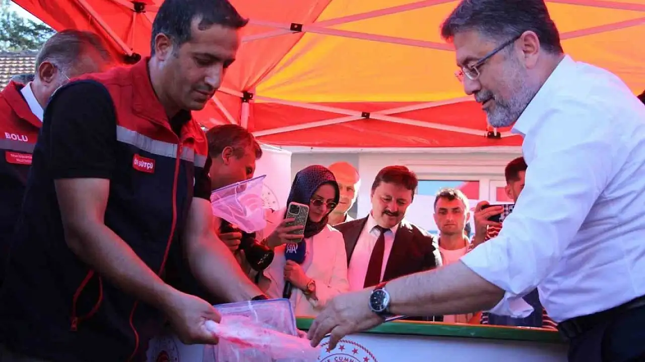 Tarım ve Orman Bakanı İbrahim Yumaklı, bir dizi ziyaret ve temaslarda bulunmak üzere Bolu'ya geldi. Programı kapsamında Gölköy'de bulunan Tarım İl Müdürlüğü'ne ait Su Ürünleri Üretim Tesisini ziyaret eden Bakan Yumaklı, burada yetkililerden tesisin işleyişi ve üretim kapasitesi hakkında bilgi aldı. Balık havuzlarını tek tek inceleyen Yumaklı, üretim sürecini yerinde görerek Karabük'e gönderilmek üzere hazırlanan alabalıkları havuzdan çıkarıp poşetlere doldurdu. Ardından Karaköy mevkisinde bulunan organik ahududu üretim alanına geçen Yumaklı, genç bir üreticinin yürüttüğü çalışmaları yerinde gözlemledi. Tarlada eline sepet alarak ahududu toplayan Yumaklı, üretime katkı sağlayan işçilerle sohbet etti, üretim sürecine dair bilgi aldı. Bakan Yumaklı, ahududu bahçesinde basın mensuplarına da açıklamalarda bulundu.