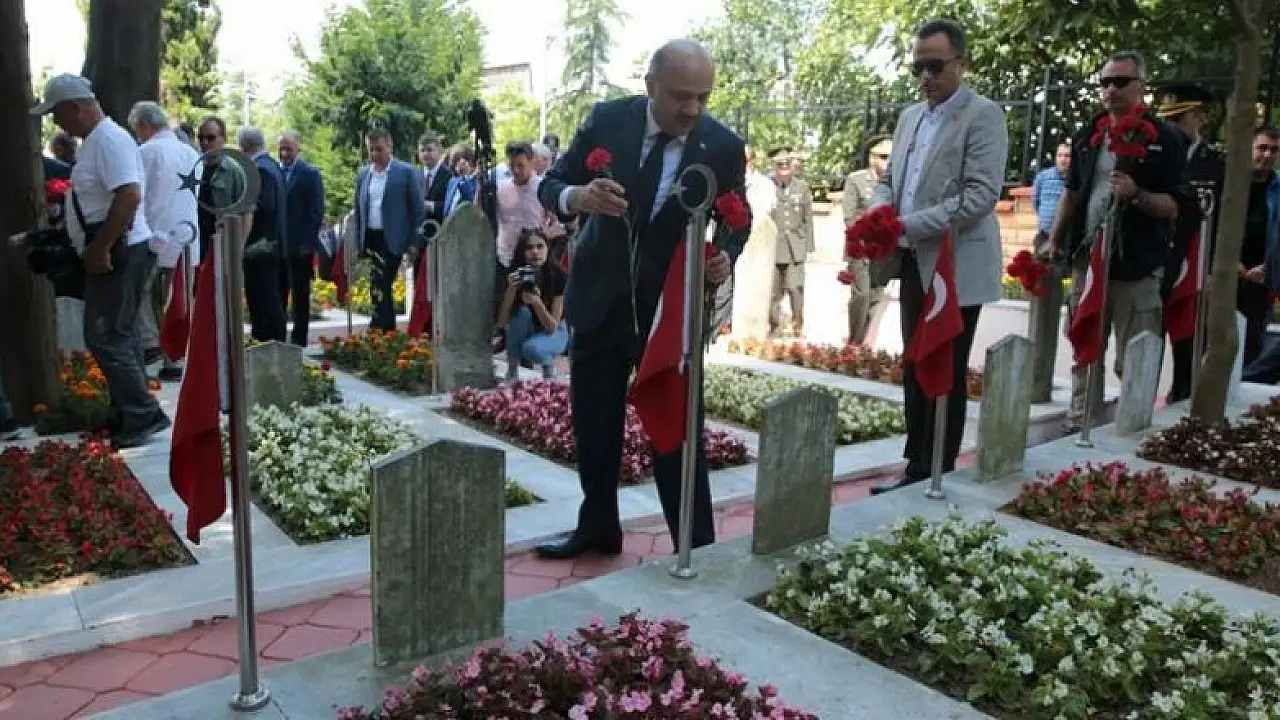 İzmit ilçesindeki Namazgah ve Polis şehitliğini ziyaret eden Milli Savunma Bakanı Fikri Işık, mezarlara karanfil bıraktı.
