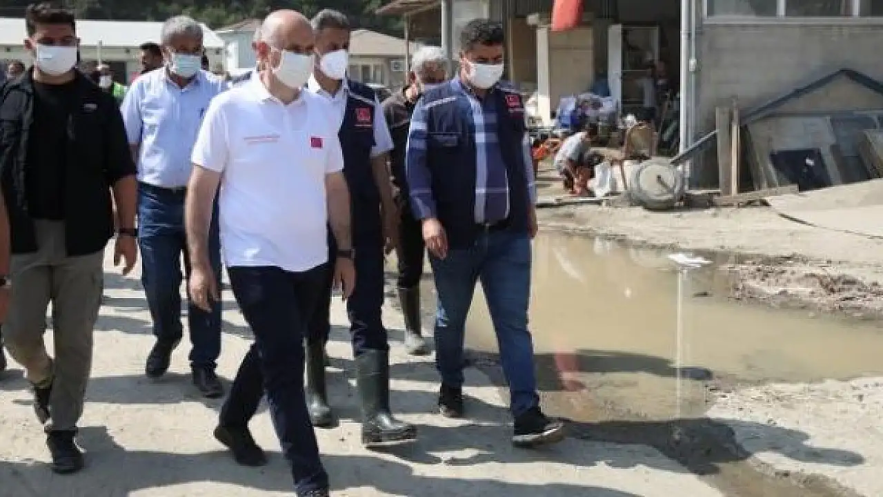 Bakan Karaismailoğlu sel bölgesinde incelemelerini sürdürüyor