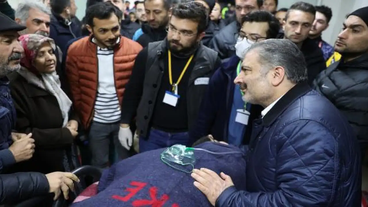 Bakan Koca, 261. saatte enkazdan çıkarılan depremzedeleri ziyaret etti