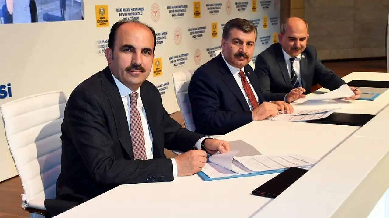 Eski Hava Hastanesinin Konya Büyükşehir Belediyesine devri protokolü, Sağlık Bakanı Fahrettin Koca, Konya Büyükşehir Belediye Başkanı Uğur İbrahim Altay ve İl Sağlık Müdürü Prof. Dr. Mehmet Koç arasında imzalandı.