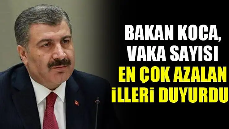 Sağlık Bakanı Fahrettin Koca, koronavirüs vaka sayısı en çok azalan illeri açıkladı. Bakan Koca'nın paylaştığı grafiğe göre vaka sayısı en çok düşen iller Kırklareli, Çanakkale, Düzce, İstanbul, Tekirdağ, Erzincan, Giresun, Yalova, Kocaeli ve Edirne oldu.