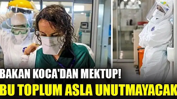 Sağlık Bakanı Fahrettin Koca, sağlık çalışanlarına yazdığı mektupta, 'Pandeminin yıl dönümünde ifade ettiğim gibi hayatlar kurtardınız. Hayatınızı riske attınız. Bu toplum, sizi terli önlükler içinde gösteren fotoğrafları asla unutmayacak' dedi.