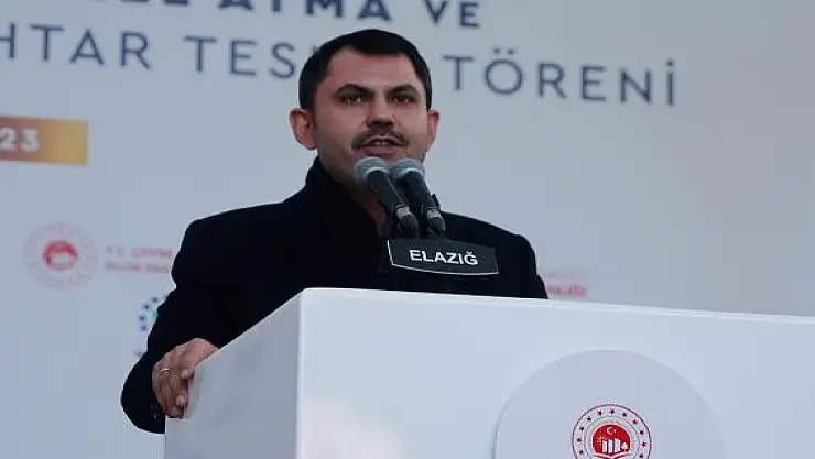 Çevre, Şehircilik ve İklim Değişikliği Bakanı Murat Kurum, Elazığ Afet Konutları Temel Atma ve Sosyal Konutlar Anahtar Teslim Töreni'nde yaptığı konuşmada, 55 gün önce 11 ili etkileyen asrın felaketini 81 ilden 85 milyon kişinin hep birlikte hissettiğini söyledi.