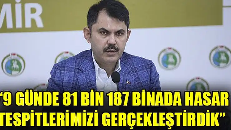 - Bakan Kurum: 9 günde 81 bin 187 bina ve 460 bin 506 bağımsız bölümde hasar tespitlerimizi gerçekleştirdik