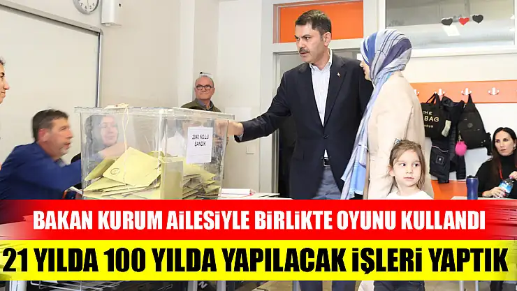 Oy vereceği okula sabah saat 11.30 sıralarında eşi Şengül Kurum ve kızı Hatice Zehra ile gelen Bakan Kurum, sandık görevlileriyle tokalaşıp kolaylık dileyerek oy verme işlemini tamamladı.