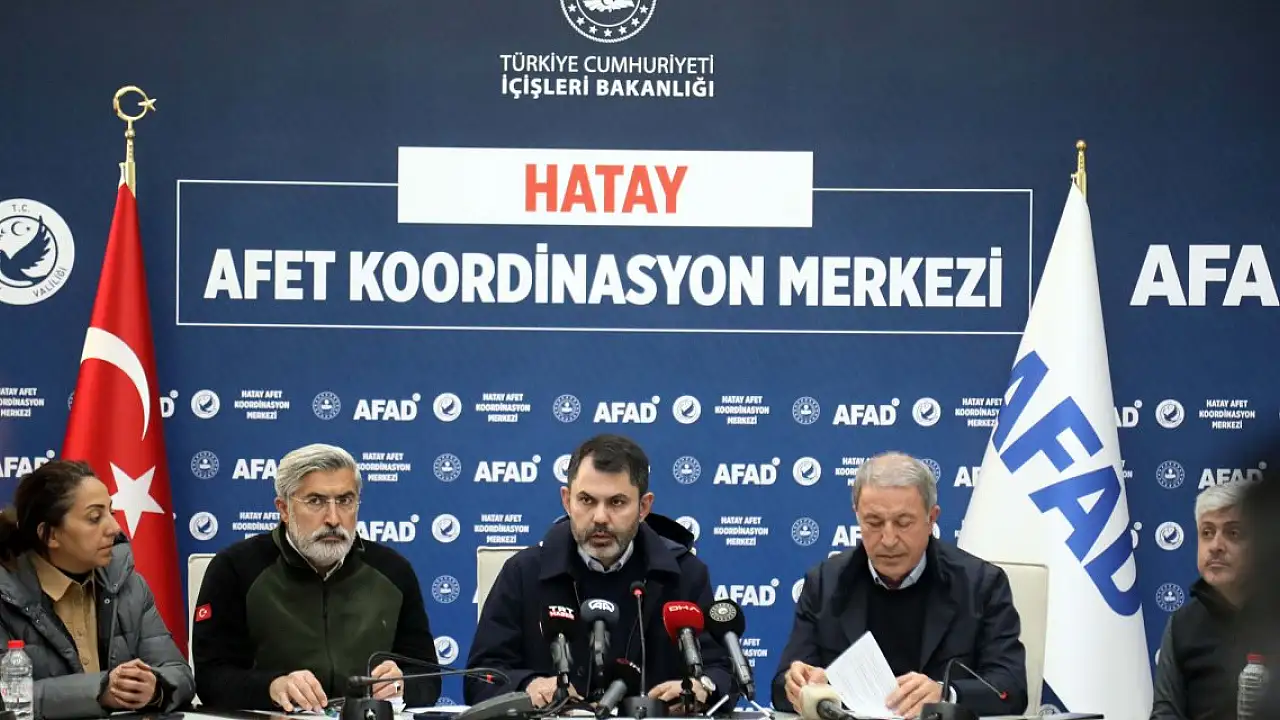 Çevre Şehircilik ve İklim Değişikliği Bakanı Murat Kurum ile Milli Savunma Bakanı Hulusi Akar, Antakya'da Afet Koordinasyon Merkezi'nde Proje Alanları Koordinasyon Toplantısı'nın ardından basına açıklamada bulundu. Şehrin tüm dinamikleriyle birlikte yeni Hatay'a dair toplantılar yaptıklarını anlatan Bakan Kurum, depremin üstünden 23 gün geçtiğini, ancak acıların hala ilk günkü gibi taze olduğunu ve dinmediğini söyledi. Devletin tüm imkanlarıyla depremin yaşandığı 11 ilde olduğunu söyleyen Kurum, seferberlik anlayışıyla çalışmaların yürütüldüğünü kaydetti. Bakan Kurum, yeni Hatay'a yönelik toplantılarda zeminle ilgili hem jeoloji, hem jeoteknik ve jeofizik uzmanlarıyla yeni yapılaşma alanlarına ilişkin hem üniversiteler, hem bilim insanları hem de şehrin kanaat önderlerinin fikir ve taleplerinin alındığını dile getirdi.