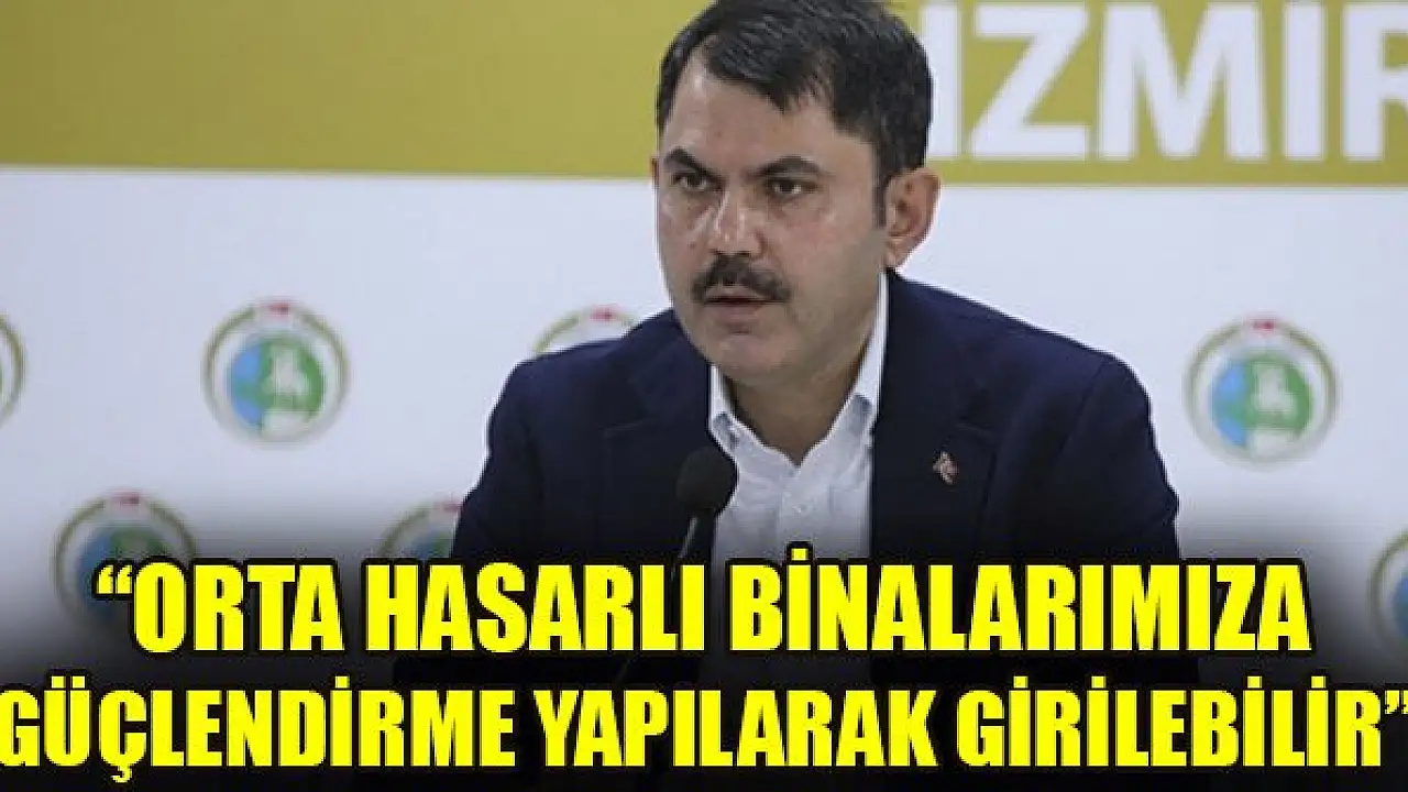 Çevre ve Şehircilik Bakanı Murat Kurum, İzmir'deki depremde orta hasarlı olduğu belirlenen binalara güçlendirme yapılarak girilebileceğini kaydetti.