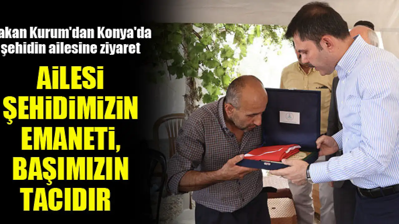Bakan Kurum, "Konya’mızın evladı Muhammed Mustafa Koca’nın babaevindeydik. Ailesi şehidimizin emaneti, başımızın tacıdır. Rabbim sabırlar ihsan eylesin. Makamı âlî olsun inşallah" ifadelerini kullandı.