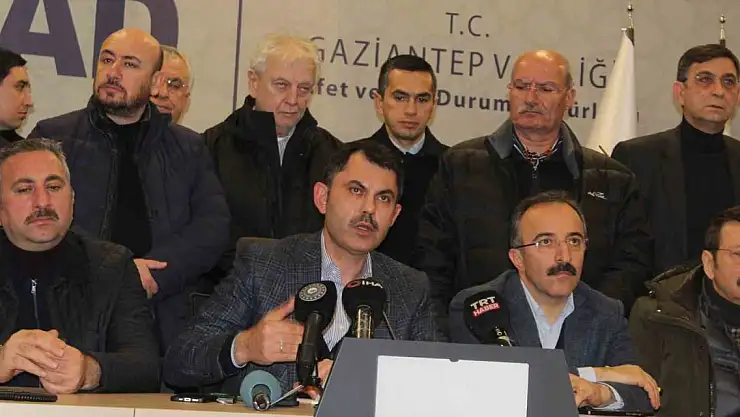 Çevre, Şehircilik ve İklim Değişikliği Bakanı Murat Kurum, Gaziantep AFAD İl Müdürlüğü kriz merkezinde depreme ilişkin açıklamalarda bulundu. Depremin ilk anından bu yana tüm illerde ve Gaziantep'te devletin ve milletin tam bir seferberlikle, 85 milyon tek yürek çalıştığını söyleyen Bakan Kurum, "Gaziantep'te can kaybı sayımız 3 bin 273'e ulaştı. Afetten kurtarılan kardeşlerimizin sayısı 13 bin 325 oldu. Kardeşlerimizin hastanelerimizdeki tedavi süreçlerini, anbean takip ediyoruz. Ben bir kez daha, hayatını kaybeden vatandaşlarımıza Allah'tan rahmet, yaralılarımıza acil şifalar diliyorum. Sözlerimin hemen başında ifade etmek isterim ki asrın felaketini yaşadığımız bugünlerde milletimiz, büyük bir dayanışma ruhu, birlik ve beraberlik refleksi ortaya koymuş, afet bölgelerine yardım elini uzatmıştır. Biz çok büyük bir aileyiz. Milletçe hepimiz toprağa verdiğimiz kardeşlerimizin tüm sevdiklerine aynı birlik ve kardeşlik ruhuyla, 85 milyon Türkiye ailesi olarak sahip çıkacağız" dedi.