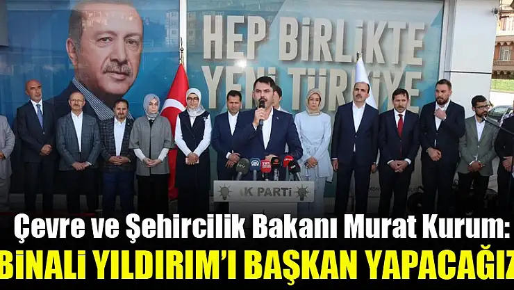 Çevre ve Şehircilik Bakanı Murat Kurum, 'Binali Yıldırım'ı 23 Haziran'da başkan yapacağız' dedi.
