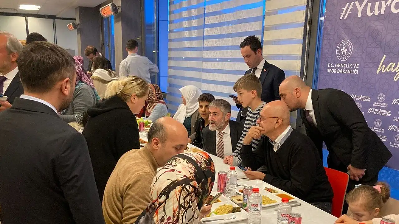 924 depremzedenin kaldığı yurtta iftar sonrası Bakan Nebati afetzedelerle bir süre sohbet etti.