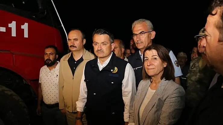 Bakan Pakdemirli, gazetecilere yaptığı açıklamada, gecenin ilerleyen saatlerine rağmen yangınla mücadelenin sürdüğünü söyledi.