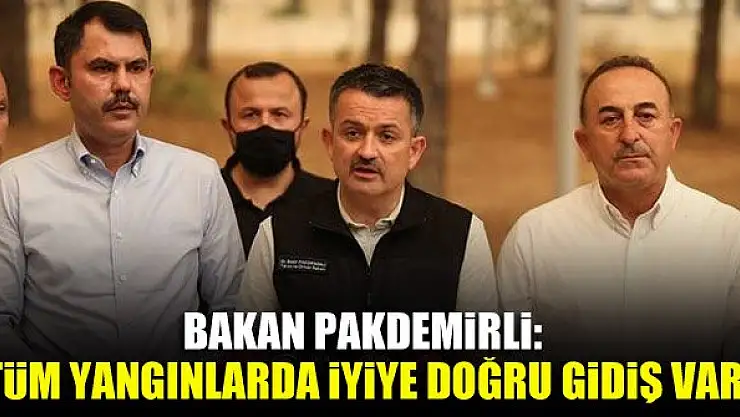 Tarım ve Orman Bakanı Bekir Pakdemirli, aktif olan tüm yangınlarda iyiye doğru bir gidiş olduğunu belirterek, yangınların 57'sinin kontrol altına alındığını söyledi.